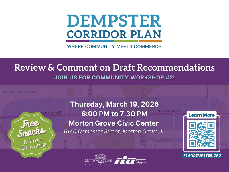 Hope to see you at the Civic Center this evening (Thursday, March 19) to learn about and comment on the draft recommendations for the Dempster Corridor Plan!